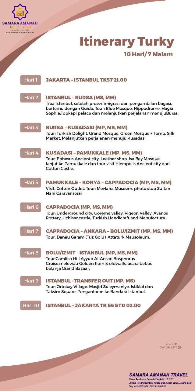 Perijinan : No. PPIU : U 129 / 2020 Phone : 021-53665141 WhatsApp : 0857 6288 8800 E-mail : info@samaratravel.co.id